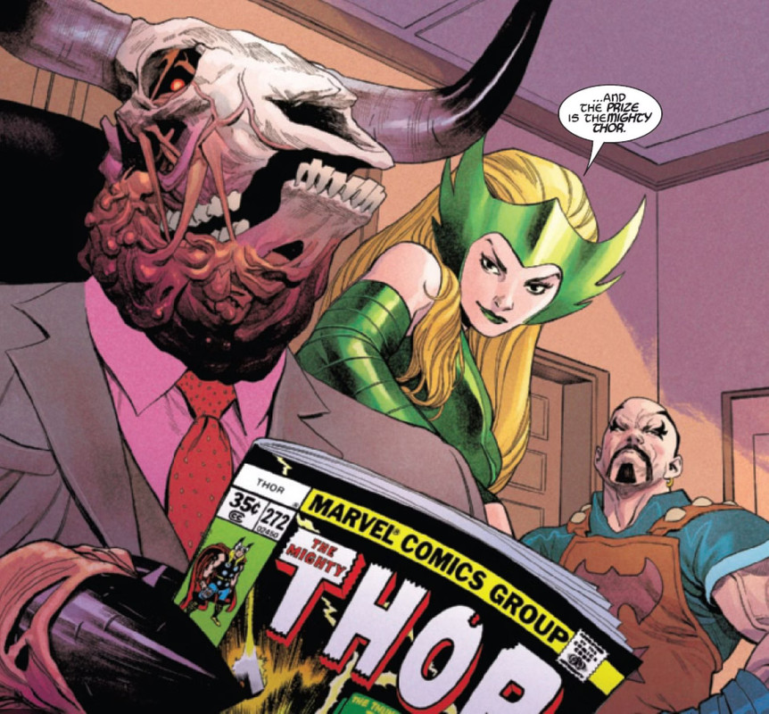 Eventually Thor begins to fight back but he is given mercy to leave without harm by Gaea and so he does. The next we see of Thor is at the front desk of the Roxxon Corporation, where he demands to speak with “The Minotaur” Dario Agger. He makes it clear that he isn’t leaving, and The Minotaur is in the cross hairs of the God of Thunder as he say “This will be our LAST meeting”.