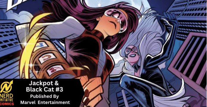 The artwork of Jackpot & Black Cat #3 is excellent just as the first two installments are. I’ll never get tired of seeing Black Cat and Jackpot in their suits. Everytime Jackpot uses her bracelets, the artists showcase their incredible skills with all of the colors and the look of whatever powers she lands on. I also think the artists for a great job at showing the emotion on Black Cat and Jackpot. Also, the cover art! They always look so good and matches the tone of the comic book run very well.