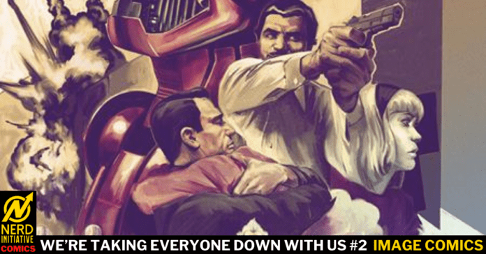 We’re Taking Everyone Down With Us #2 by Matthew Rosenberg, Stefano Landini, Jason Wordie, and Hassan Otsmane-Elhaou continues its “spy-fi” adventure.