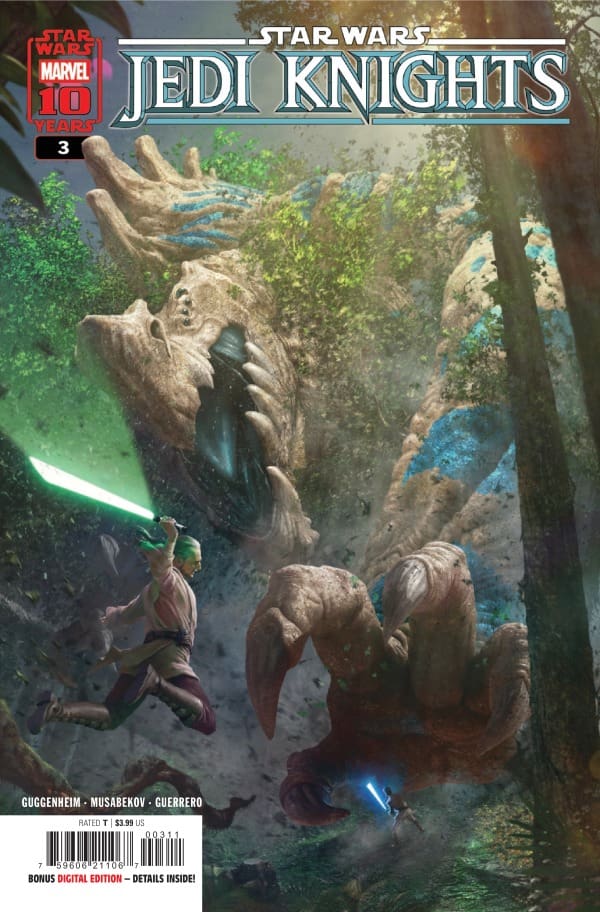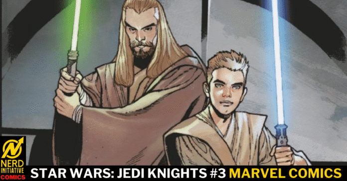 Star Wars: Jedi Knights #3 by Marc Guggenheim (Writer), Madibek Musabekov (Artist), Luis Guerrero (Color Artist), VC’s Clayton Cowles (Letterer) & Rahzzah (Cover) is an action packed issue from start to finish that’s sure to please all.