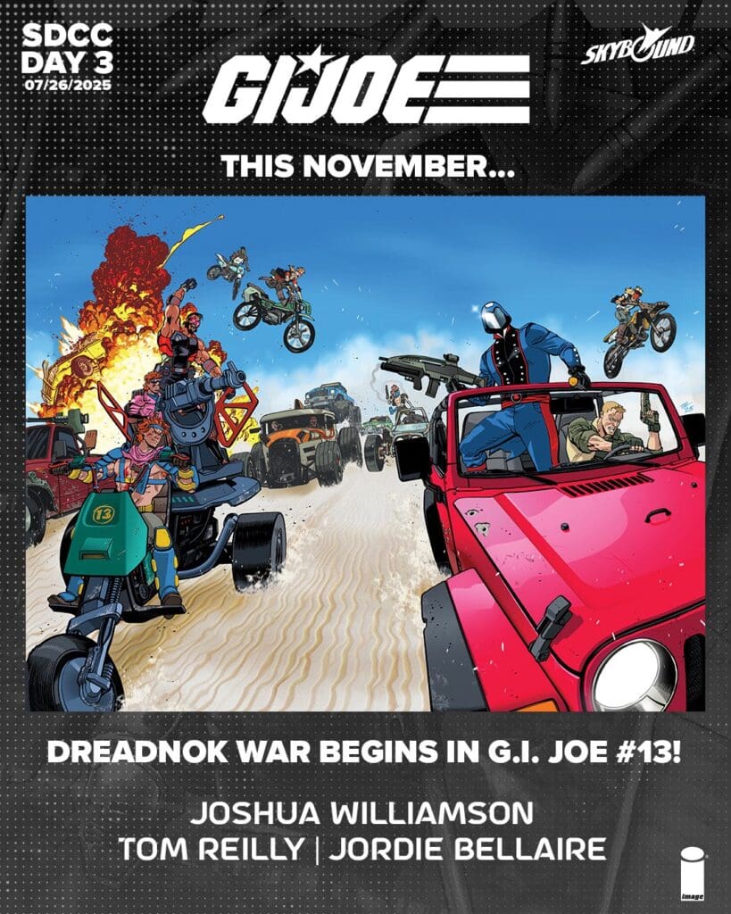 It was announced that artist Tom Reilly is newly signed as Skybound Exclusive. This news gave way to the next saga for the ‘Joes. The “DREADNOK WAR” starts with issue #13! Cobra Commander is being hunted and DUKE is his only hope?! The story is so HUGE, G.I. Joe will be shipping twice monthly! Get Ready!