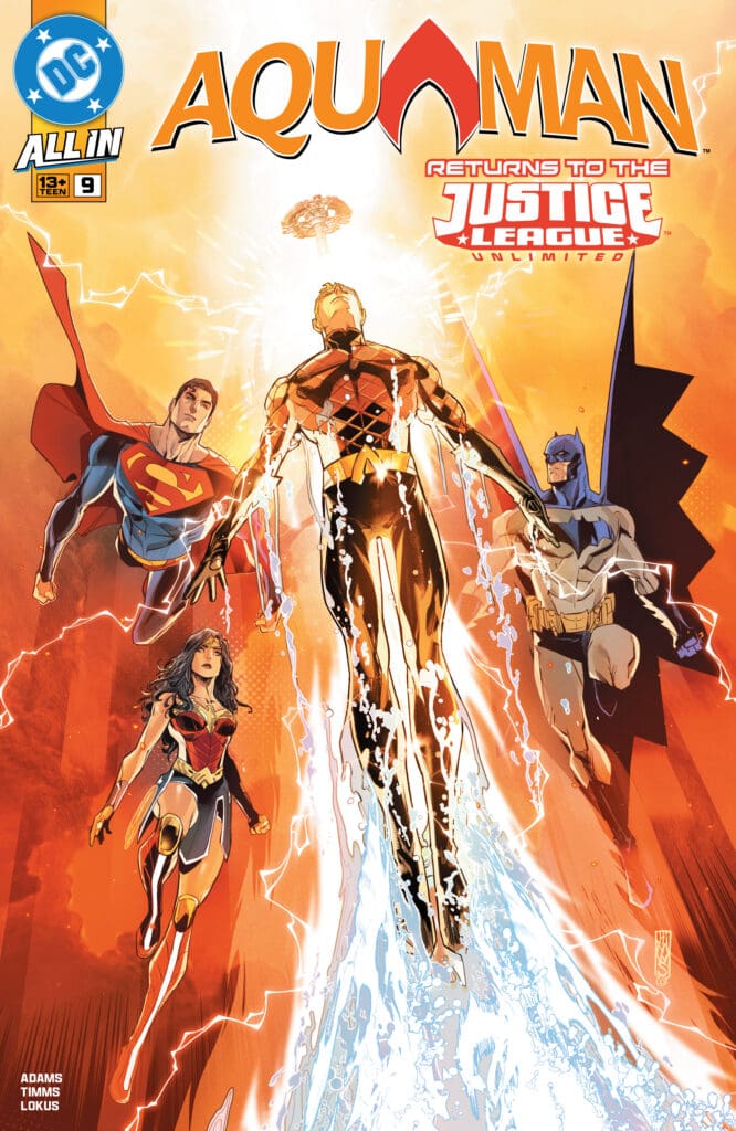 Aquaman is forced to deal with the aftermath and pick up the pieces as he says goodbye to his beloved wife, Mera. He also now must navigate his newfound powers along with his now adult daughter, Andrina. The tides must continue to flow, and heavy is the crown.