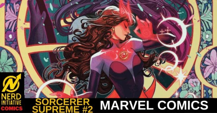 The Scarlet Witch Wanda Maximoff is now the Sorceress Supreme, having rescued the Eye of Agamotto and the Cloak of Levitation from Doom’s destruction. Realizing the enormity of her station, Wanda has assembled a council to guide her in her task as Sorceress Supreme, but Scarlet Witch holding the mantle of Earth’s Sorcerer Supreme does not sit well with The Vishanti, who have chosen Agatha Harkness as their own champion. Such serious battles require serious discussion, that’s why Megan and Shawn are here with you this week for this review of Sorcerer Supreme #2.
