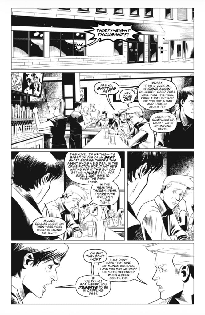 Travis: The artwork by Marcelo Costa is so crisp and clean. This adds such a defined look to the art, especially when there is no color being used. I love to read simple black and white comics, mainly because you can use your imagination to fill in those blanks left behind. The line work and attention to detail make this so appealing to the eyes. Even without the use of color, Marcelo can show raw emotion from the character’s faces.