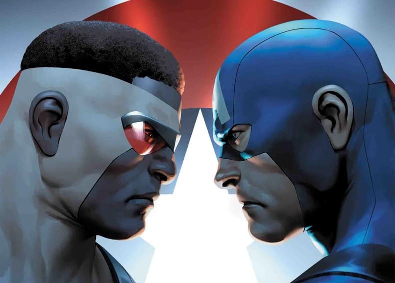 12 years ago, Rick Remender ended his dimension-crossing run on Captain America by passing the shield from Steve Rogers to his long-time partner, Sam Wilson. What transpired from there was 6 issues detailing Sam’s first adventure alongside the adopted son of Rogers, having taken over the mantle of Nomad to take down Hydra…right as the entire universe was reset by Jonathan Hickman’s Secret Wars. From there, we saw the ALL-NEW, ALL-DIFFERENT MARVEL initiative from Marvel Comics. A new branding for their relaunch of titles at issue 1, where the universe didn’t fully reboot per se, but enough was changed to where it promised new jumping-on points for modern readers. This would bring the longest run Sam Wilson would have as Captain America to an end, totaling 24 issues. This run would quite literally be prophetic as writer Nick Spencer would create the hashtag, #NotMyCaptainAmerica, in the pages of the run, which would then be co-opted by racist fans once the MCU followed in the footsteps of the comics. Comics would show Sam struggling to carry the weight of the shield in the modern day while being faced with in-universe racism, human trafficking, police brutality, as well as his former partner taking over the world once Steve Rogers resumed his identity as Captain America, having been restored to his youth by the Cosmic Cube, but being made into a loyalist to Hydra.